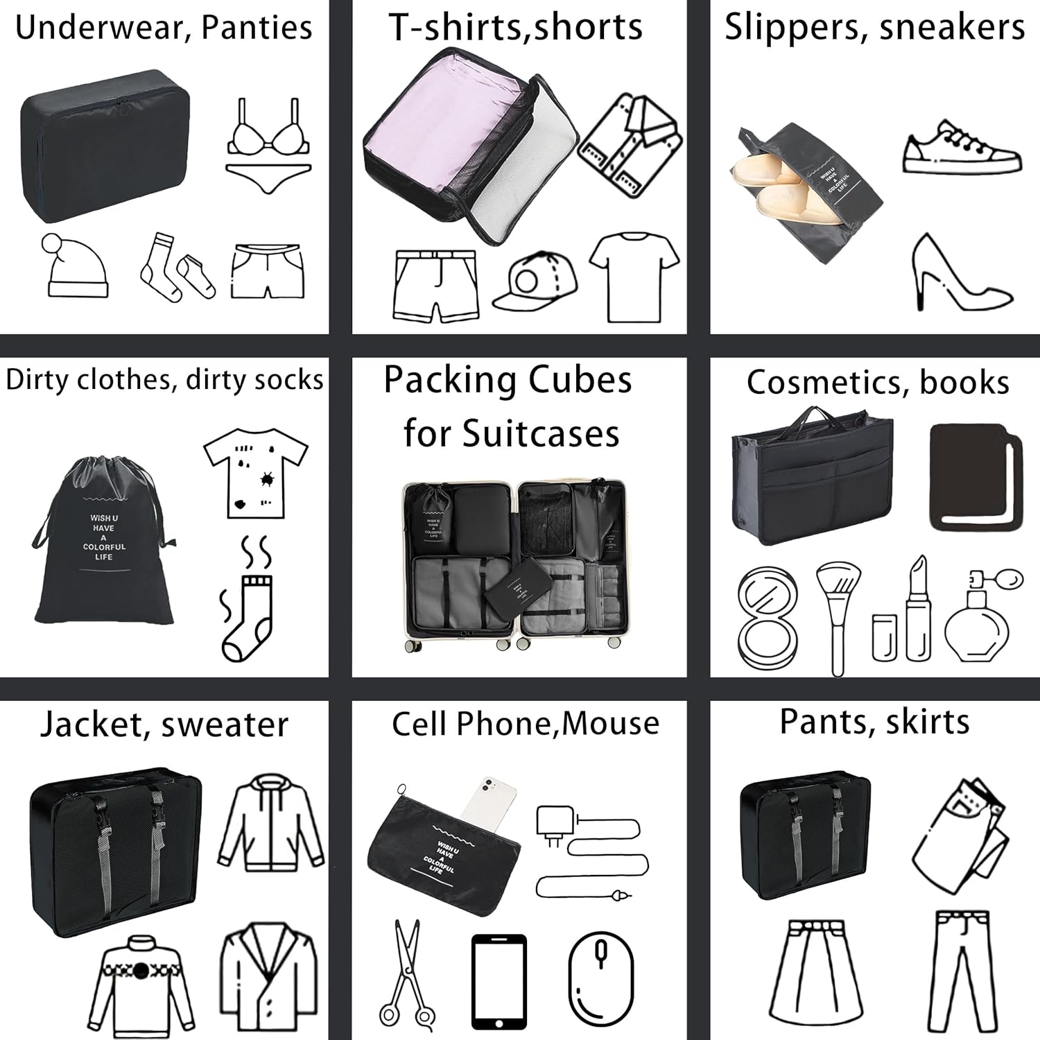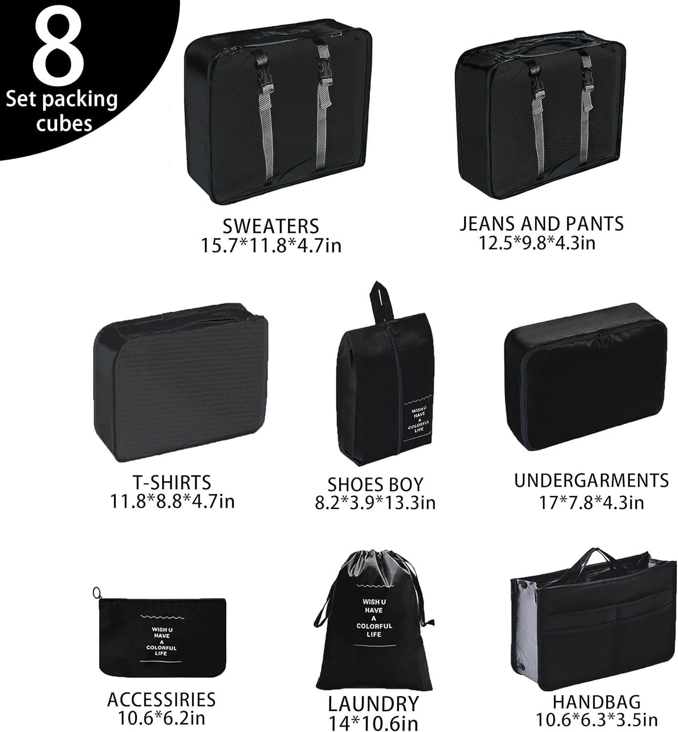 UNGGJKB Travel Accessory Organizer, 8 Set Packing Cubes for Suitcases, Convenient Travel Packing Organizer